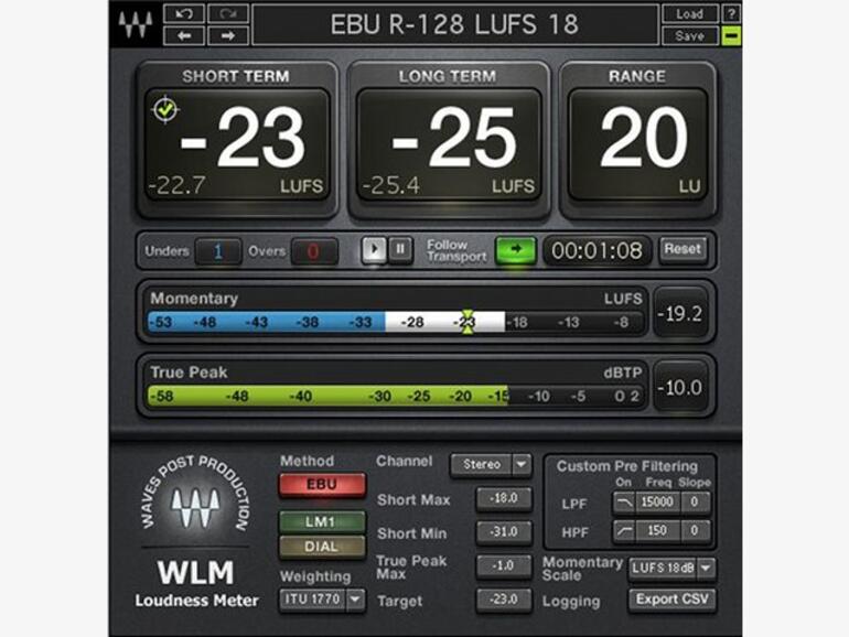 Der Nutzer kann das Zeitfenster zur Lautheitsanalyse in den vier verschiedenen Einstellungen Momentary, Long Term, Short Term und True Peak einrichten. Das laut Hersteller einzigartige Warn- und Logging-System soll aktuelle Pegelstände dokumentieren und über einen unter- beziehungsweise überschrittenen Schwellenwert informieren. Diese Informationen werden anschließend in einer Excel-Tabelle im CSV-Format abgelegt. Laut Waves soll dieser Umstand ideal für Content-Ersteller und Unternehmen mit dem Fokus auf Postproduktion sein.