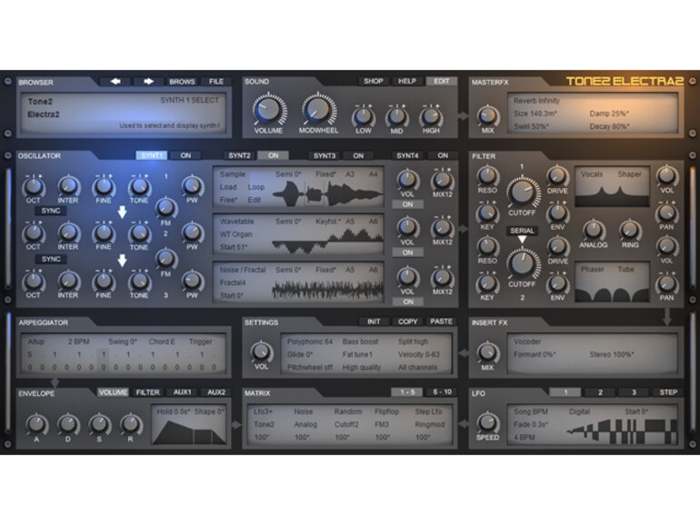 Mit dem Vorgänger ElectraX lieferte Hersteller Tone2 bereits eine reife Workstation, bestehend aus vier Synthesizer Modulen auf substraktiver Basis, inklusive FM-Synthese und dem Import von eigenen Samples. Letztere können im Nachfolger nun auch innerhalb des Plug-ins modifiziert werden, was den Umgang enorm erleichtert. Auch der neue Patchbrowser sorgt für schnelleren Workflow, ebenso die Oberfläche des Synths, die dank moderater Färbung wesentlich übersichtlicher daher kommt.