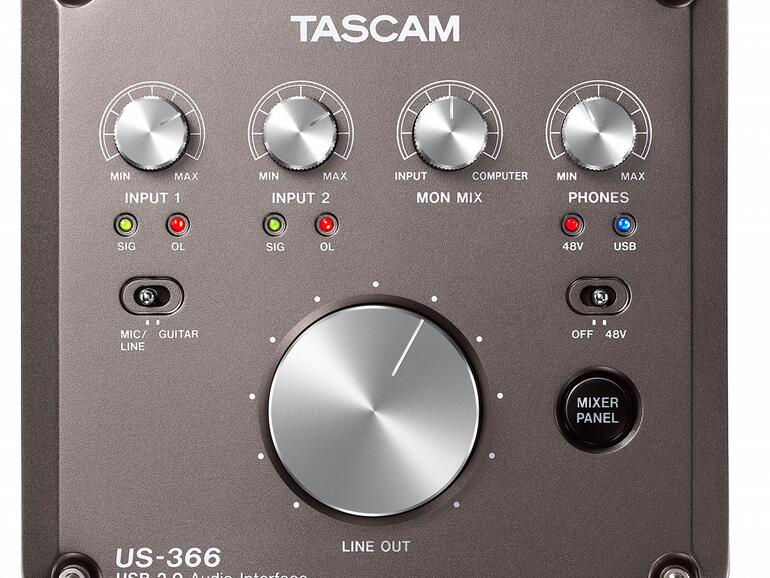 Das US-322 und das US-366 sind jeweils mit zwei Audioeingängen (XLR und Klinke) inklusive 48-V-Phantomspannung ausgestattet, sodass Kondensator-Mikrofone und E-Gitarren angestöpselt werden können. Ausgangsseitig stehen dem Anwender zwei Outputs, entweder Cinch oder symmetrische Klinke zur Verfügung. Der große Bruder, das Tascam US-366 wurde noch um einen optischen Digitaleingang beziehungsweise -Ausgang ergänzt.