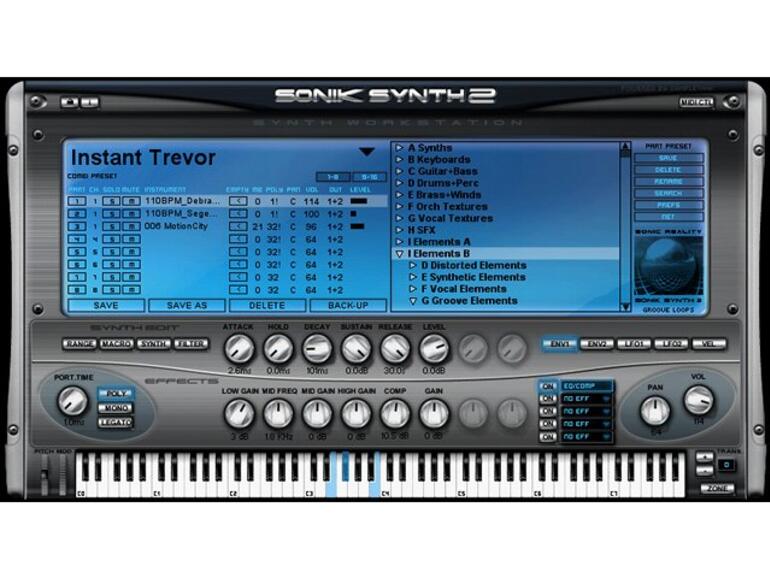Dazu wird eine Sammlung von Klangelementen angeboten, die man als Bausteine für eigene Soundkreationen nutzen kann, darunter Wellenformen zahlreicher alter Synthesizer, Geräusche, Gesangs- und Groove-Elemente. Des weiteren haben auch Multiprogramme, die aus einzelnen Klängen und Elementen bestehen, ihren Weg in die Klangbibliothek gefunden. Sonik Synth 2 greift auf die Synthesefunktionen des bewährten SampleTank zurück und bietet dem Benutzer damit eine 16fache Multitimbralität und Layerfunktionen. Die Programme der Workstation lassen sich auch in SampleTank 2.5 laden.