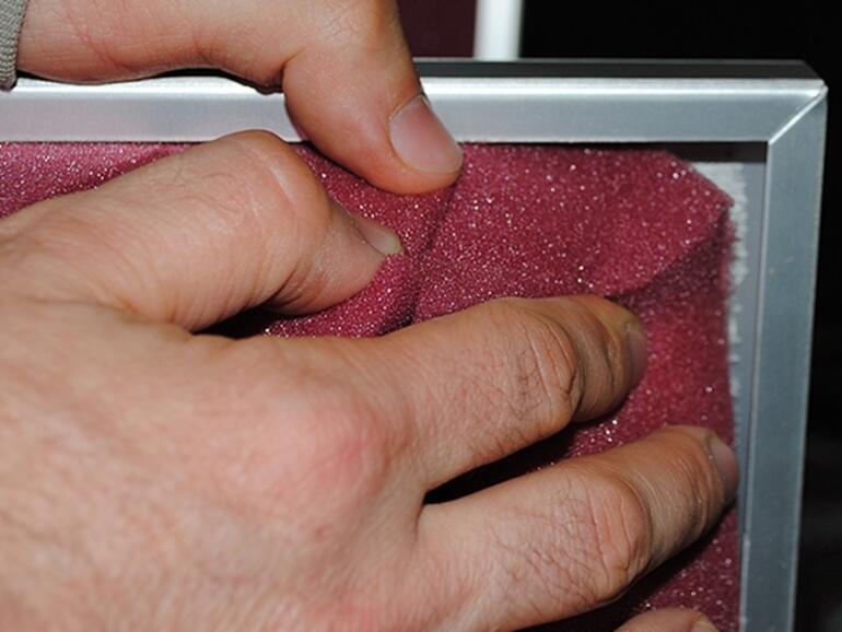 Ähnlich wie die bereits genutzten Hartfaserplatten, werden auch die Hängekassetten direkt mit den Absorbermodulen beklebt. Dank zahlreicher Montagepunkte und Stanzungen auf der Rückseite lassen sie sich wie Bilder aufhängen. Optional ist die Montage- und Hängekassette werkseitig fertig bestückt oder unbestückt erhältlich.