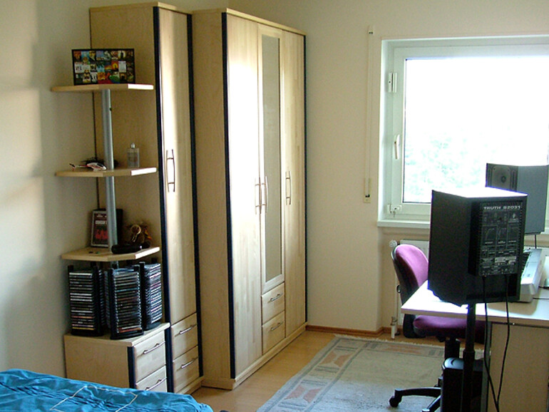 Unser Heimstudio ist ein Arbeits- und Schlafzimmer von 12,5 Quadratmetern. Der Raum fällt recht klein aus und die Austattung mit Bett und Kleiderschrank tut ihr Übriges, um die Akustik negativ zu beeinträchtigen. Bevor wir mit aktustischen Messungen beginnen, platzieren den Arbeitsplatz so, dass die Erstreflexion der Boxen die dem Fenster gegenüberliegende Wand trifft.