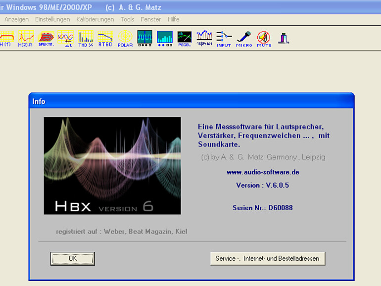 Im ersten Schritt messen wir akustische Raumparameter und nutzen dazu die Messsoftware HBX.6 von Gerald Matz. Das Programm bietet zahlreiche Messfunktionen, darunter MLS-Messung, Energie-Zeit-Kurve (ETC), Zerfallsspektrum und Nachhallzeit (RT60) und arbeitet mit vielen Soundkarten zusammen. HBX.6 kann auch in der Demo-Version für bis zu 23 Messungen kostenlos genutzt werden.