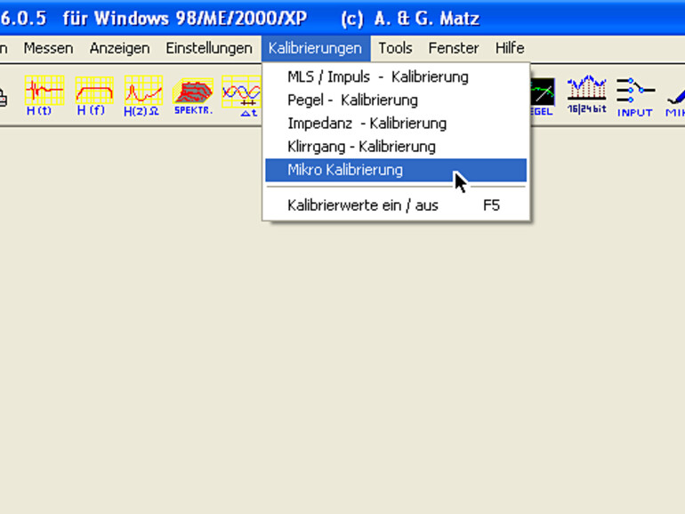 Messung der Raumakustik Schritt 8: Kalibrations-Menü