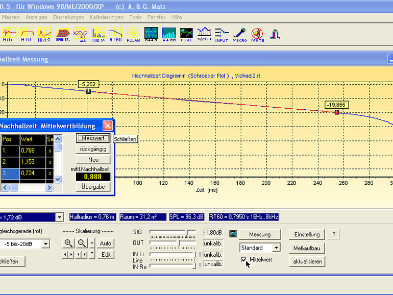 Messung der Raumakustik Schritt 14: RT60-Messung