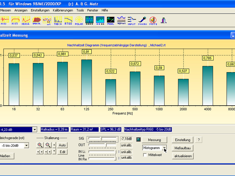 Der wohl interessanteste Plot unserer Messserie ist das RT60-Histogramm, das die Nachhallzeit in Abhängigkeit der Frequenz darstellt. Ziel der nächsten beiden Folgen dieses Workshops wird nun sein, mit preiswerten Mitteln die Nachhallzeit Ihres Studios soweit zu optimieren, dass Sie einerseits den Raum noch multifunktional nutzen, andereseits aber auch Ihren Mix zuverlässig beurteilen können.