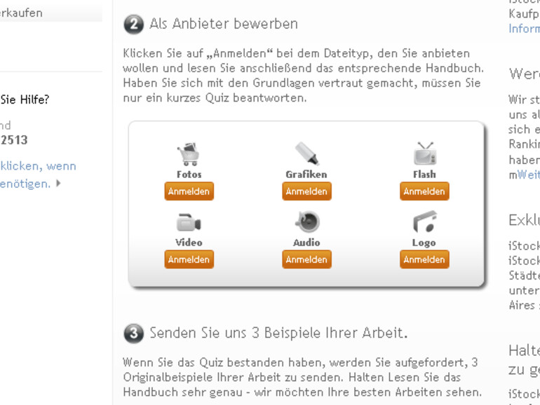 Um Ihre Musik bei iStockaudio verkaufen zu können, sollten Sie sich als Anbieter (hier Audio) bewerben. Hierzu müssen Sie sich mit den technischen und rechtlichen Grundlagen in sieben Schritten vertraut machen, um anschließend mit diesem Wissen einen Aufnahmetest zu absolvieren. Wenn Sie das Quiz erfolgreich abgeschlossen haben, legen Sie Ihrer Bewerbung drei Beispieltracks bei.