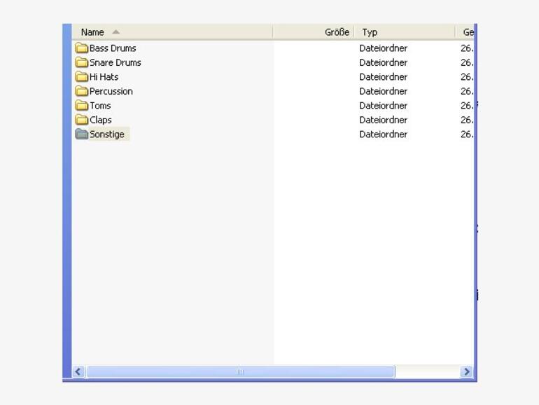 Das Organisieren nach Instrumententypen verursacht zwar beim Sortieren einmalig mehr Aufwand, zahlt sich aber später im Alltag aus. So finden Sie bei diesem Prinzip wirklich alle Bassdrums in einem großen Ordner und müssen sich nicht ständig durch Ordnerhierarchien klicken. Wie sieht bei diesem Prinzip nun aber die logische Struktur der Unterordner aus?