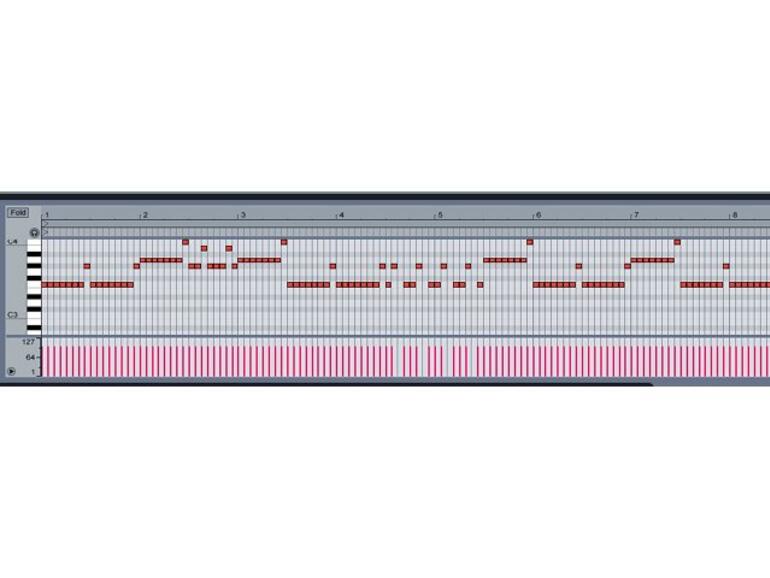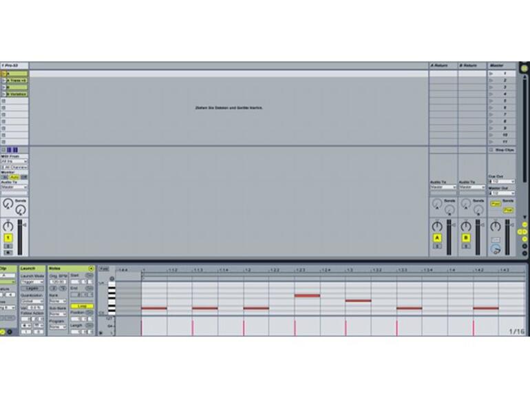 Zunächst einmal erzeugen Sie bitte in einer MIDI-Spur zwei bis drei einfache Basssequenzen mit einem Ihnen zur Verfügung stehenden Plug-in oder einem internen Instrument von Live. Anschließend kopieren Sie diese Clips einfach innerhalb der gleichen Spur und erzeugen zum Beispiel durch musikalisch sinnvolle Transponierungen inhaltliche Abwandlungen zwischen ihnen.