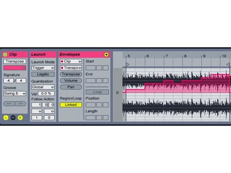 Bisher haben wir fast alle gezeigten Anwendungen mit MIDI-Clips vollzogen. Audio-Clips bieten noch ganz andere Möglichkeiten, wenn es um Follow-Actions geht. Probieren Sie beispielsweise einmal das zufallsgesteuerte Transponieren von Audio-Clips per Follow-Action aus, indem sie identische Audio-Clips mit unterschiedlichen Transpose-Einstellungen verketten.