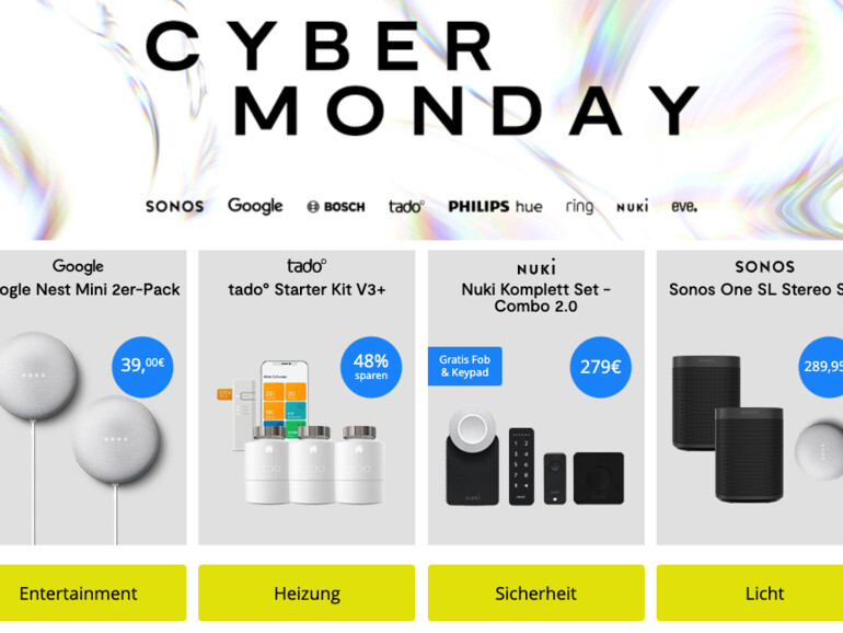 Der Smart-Home-Spezialist Tink hat gleich mehrere Aktien laufen. Es gibt zum Beispiel bei den Google Nest Smart-Displays jetzt zwei Geräte zum Preis von einem. Die Google Nest Mini-Lautsprecher gibt e sim Doppelpack jetzt für 39 statt 118 Euro. Viel sparen kannst du zudem bei den Kombipaketen, wie dem Tado-Starterkit mit zwei Heizkörperthermostaten für rund 100 statt 210 Euro.