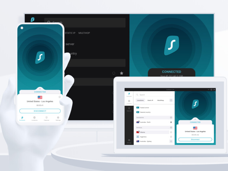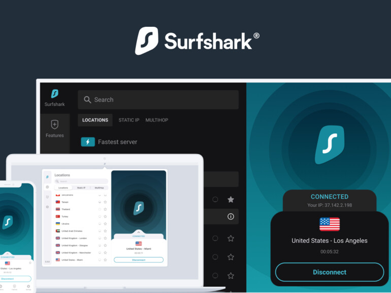 Eine andere Liste dürfte für dich jedoch noch interessanter sein, nämlich jene, die einige der Leistungen umfasst, die dir der eingangs erwähnte Anbieter Surfshark mit seinem VPN bietet. Mit dem Surfshark VPN schützt du nicht nur deine Online-Identität und surfst sicher im öffentlichen WLAN. Die Software blockiert auch wirksam Tracker und Malware. Du verhinderst mit Surfshark jede Zensur und sparst so online bares Geld. Auch Geoblocking – also das regionale Sperren von Online-Inhalten durch die diversen Anbieter – kannst du teilweise mit einem Surfshark-VPN umgehen. Dazu wählst du lediglich einen VPN-Server in dem gewünschten Land und bewegst dich anschließend online quasi mit einer IP-Adresse des Landes.