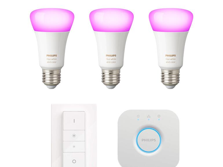 Philips beleuchtet mit seinen Hue-Lampen gefühlt jedes zweite Smart-Home, das System ist nicht zuletzt ob der Vielfalt an unterschiedlichen Leuchtmitteln außerordentlich beliebt. Der Einstieg in das qualitativ hochwertige System ist aber nicht günstig – da kommt jedes Angebot gelegen. Der Online-Shop Tink schnürt im Rahmen seiner „Smart Week“ ein ebensolches Angebot: Ingesamt drei farbfähige E27-LED-Birnen kommen hier im Paket einer Bridge und einem Dimmschalter zum Sparpeis daher.