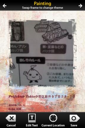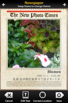 Die Fotos müssen mit dem Programm aufgenommen werden, auf bestehende Fotos greift es nicht zu. Viel Auswahl gibt es bei den Rahmen: Ob eher nüchtern oder verspielt, für jedes Motiv sollte etwas dabei sein. Zu beachten ist aber, dass sich die Aufnahmen innerhalb des Rahmen nicht verschieben lassen - schlecht, wenn Rahmenelemente wichtige Teile des Bildes verdecken. Die Vorlagen bieten noch Platz für zusätzlichen Text, notfalls lässt sich auch der Ort manuell eingeben.