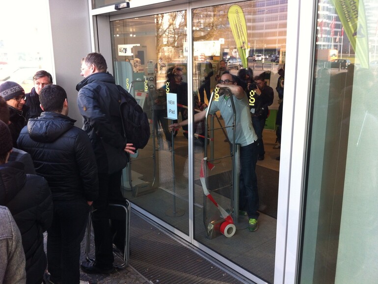 Die Schlange vor dem Gravis Store in Berlin ist an diesem Freitagmorgen fast einhundertfünfzig Meter lang. Das neue iPad ist da, und die Handelskette honoriert dieses Ereignis mit einer vorgezogenen Öffnungszeit. Zwei Stunden früher als normal werden die schicken Glastüren in vielen Filialen aufgesperrt. Doch wer sicher gehen wollte sein iPad zu bekommen, musste an diesem 16. März 2012 seinen Wecker weit früher stellen. „Seit halb fünf bin ich hier“, sagt ein müde aber zufrieden aussehender Berliner, der unter den ersten Zwanzig in der Schlange steht und gerade seinen Klappstuhl zusammenfaltet. Eine Gruppe junger Russen muss sich erst untereinander verständigen, ehe einer auf Englisch antwortet, sie seien bereits um vier Uhr nachts hier am Ernst-Reuter-Platz aufgetaucht, um das neue iPad in die Finger zu bekommen.