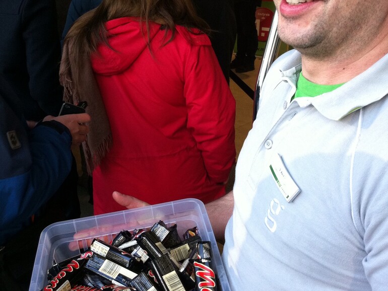 (Bild: Tobias Friedrich) Für alle, die lange ausgeharrt hatten, spendierte Gravis eine kleine Stärkung.