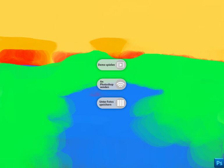 Die für 3,99 Euro im App Store* erhältliche dritte Erweiterung für Photoshop ist nicht nur die teuerste App des Trios, sondern auch gleichzeitig die kurioseste Photoshop-iPad-App. Mit Eazel soll laut Adobe „das iPad als Leinwand und der Finger als Pinsel“ dienen, um eine „neuartige Interaktion zwischen Nass- und Trocken-Techniken“ zu bieten.