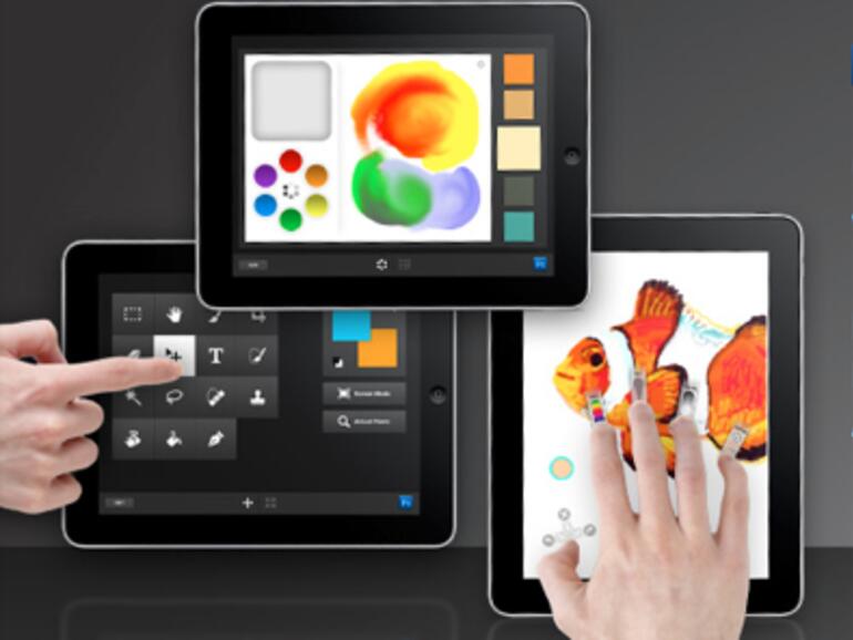 Anwender von Photoshop 5 ab Version 12.0.4 können ihr iPad ab iOS 4.3 für 2,39 Euro mit Color Lava, für 3,99 Euro mit Eazel und für 1,59 Euro mit Nav bestücken und mal gucken, worum Adobe solchen Wirbel macht.