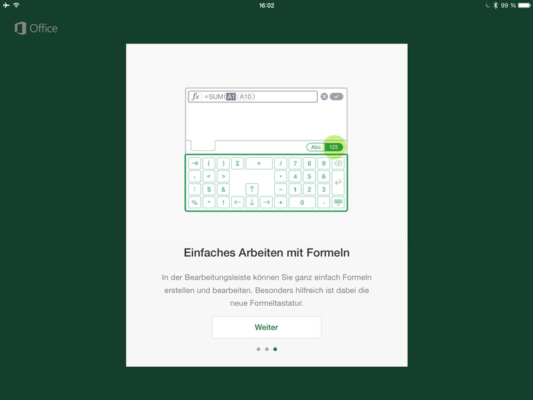 Das Rechenblatt-Programm Excel war eine der ersten Anwendungen für den Mac. Jetzt kann Excel auf dem iPad installiert werden. Rund 222 Megabyte beträgt der kostenlose Download aus dem App Store. Auf dem iPad startet die App unter iOS 7 und färbt Schaltflächen und Kopfbereich passend zum App-Icon grün ein. Wie auch Word kann Excel unverbindlich und kostenlos genutzt werden. Voraussetzung ist dennoch ein Nutzerkonto bei Microsoft – etwa ein Zugang bei office.com. Zudem kann Excel auf dem iPad im Rahmen einer Lizenz für Office 365 verwendet werden. Office 365 kostet knapp 100 Euro pro Jahr und darf auf fünf Computern und fünf Tablets gleichzeitig genutzt werden.