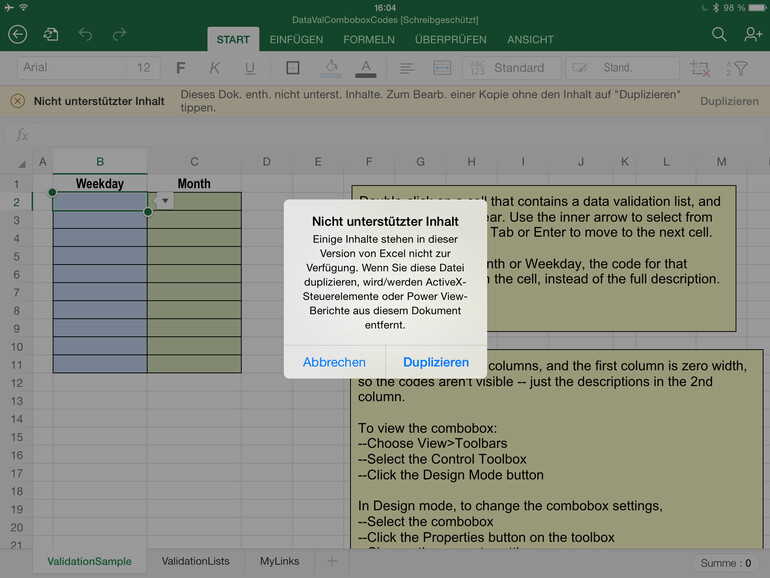In meiner Excel-Datei sind Hyperlinks enthalten, die auf andere Registerblätter verweisen. Leider funktionieren sie nicht (sie reagieren einfach nicht, wenn ich sie anklicke). Weiß jemand, ob das in Excel für iPad überhaupt unterstützt wird?