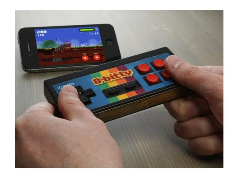 Der iCade 8-Bitty ist ein NES-ähnliches Gamepad, dass sich über Bluetooth mit dem iOS-Gerät verbindet. Dann kann es auch schon losgehen: Über acht Buttons und dem D-Pad lassen sich die Games steuern. Ja, das Teil sieht Retro aus. Es ist ein kleiner Klotz in der Hand, nichts mit ergonomisch-geformter Griffigkeit. Dafür kann man aber die ganzen alten Klassiker damit daddeln, egal ob Super Mega Worm, PAC-MAN oder TempleRun. Einige Spiele gibt es nur gerätespezifisch für iPhone oder iPad, viele sind kostenlos.