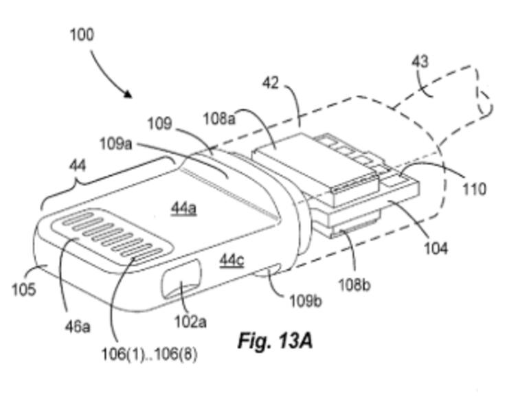 Angemeldet wurde das Patent für den „Dual orientation connector with external contact and conductive frame“ – dem „beiseitig ausgerichtetem Anschluss mit externem Kontakt und leitfähigem Rahmen“ bereits im November 2012.