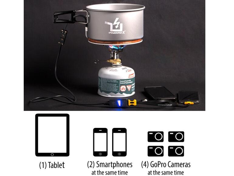 Der PowerPot X ist ein Topf mit zweifachem Nutzen: Zum einen lässt sich laut Erfinder David Toledo mit ihm schnell und bequem eine Mahlzeit zubereiten, zum anderen kann er Smartphones, Tablets und Gadgets aller Art aufladen. Das funktioniert unterwegs mit einem Camping-Kocher ebenso wie daheim am Herd.