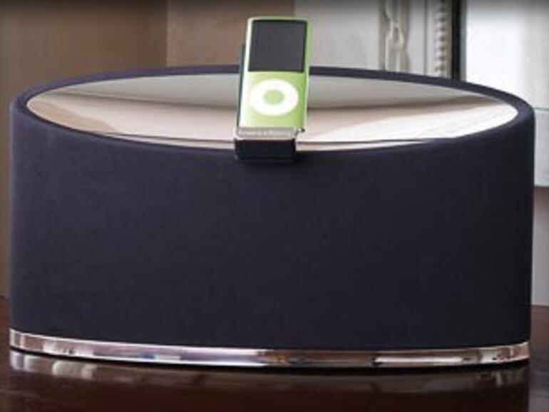 Der bewegliche Dockarm des Zeppelin Mini lässt sich im Gegensatz zum großen Modell auch horizontal drehen, iPhone oder iPod touch können also zum Video anschauen in die richtige Position gebracht werden. Außerdem können beide Geräte nun auch über den USB-Anschluss des Systems mit dem Computer verbunden werden.
