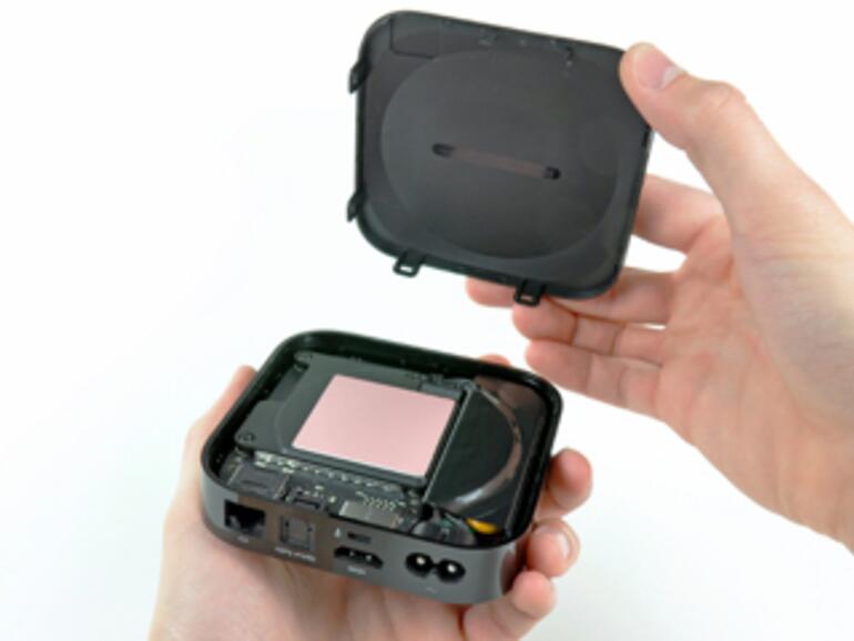 Mit 8 von 10 Punkten wertet iFixit Apple TV als erfreulich einfach auseinanderzunehmen. Die Spannungsversorgung ist über eine separate Tochterplatine angebunden. Kunststoff-Kissen sind als Wärmeleiter einfacher in der Handhabung als Paste. Ein grünes Gütesiegel für Umweltverträglichkeit wäre Apple angesichts dieses Geräts wohl auszustellen.