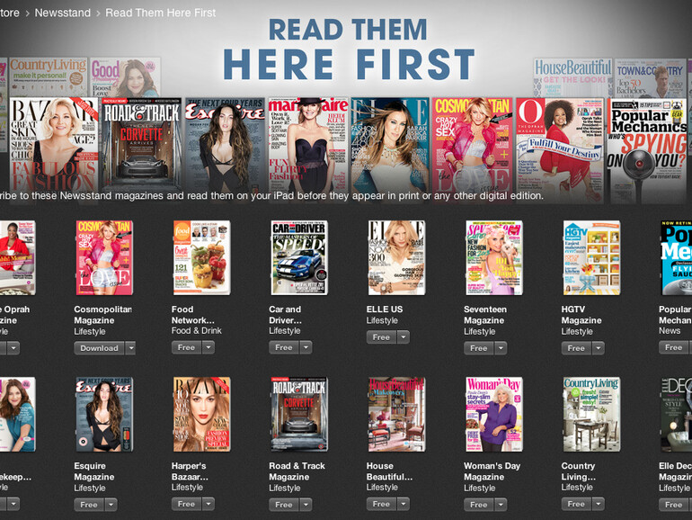 "Read them here first" nennt Apple das exklusive Angebot, welches derzeit zwanzig Magazine umfasst. Der Zeitraum der Exklusivität variiert von Titel zu Titel, aber jeder soll für das iPad ein paar Tage früher erhältlich sein. Hearst gehört zu den Verlagen, die Angaben über den Erfolg ihres digitalen Angebots gemacht haben. So gibt es derzeit 800000 Digital-Abos, die meisten Leser willigen ein, Daten von sich preiszugeben.