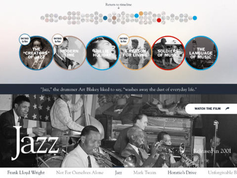 Die iPad-App enthält Szenen und Extras aus allen 25 seiner Filme. Zu den Themen gehören Jazz, der US-Bürgerkrieg, Frank Lloyd Wright, Prohibition und Mark Twain. Das Thema "Innovation" ist bereits freigeschaltet, der Rest lässt sich gegen eine einmalige In-App-Zahlung aktivieren.