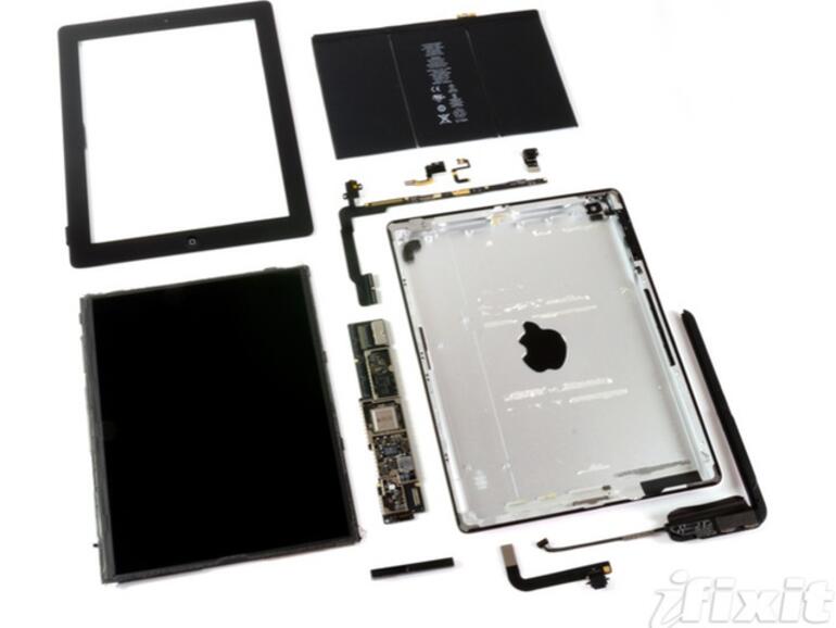iFixit öffnete das „Klebstoff-versiegelte“ iPad 4 mit gekonnten Griffen und zeigt mit einigen Fotos das iPad 4 von innen. Da es neben dem neuen Quad-Core A6X-Chip, dem LG-Display und dem Lightning-Connector keine nennenswerten Änderungen gibt, fällt das Teardown für die vierte Generation des iPad sehr knapp aus.