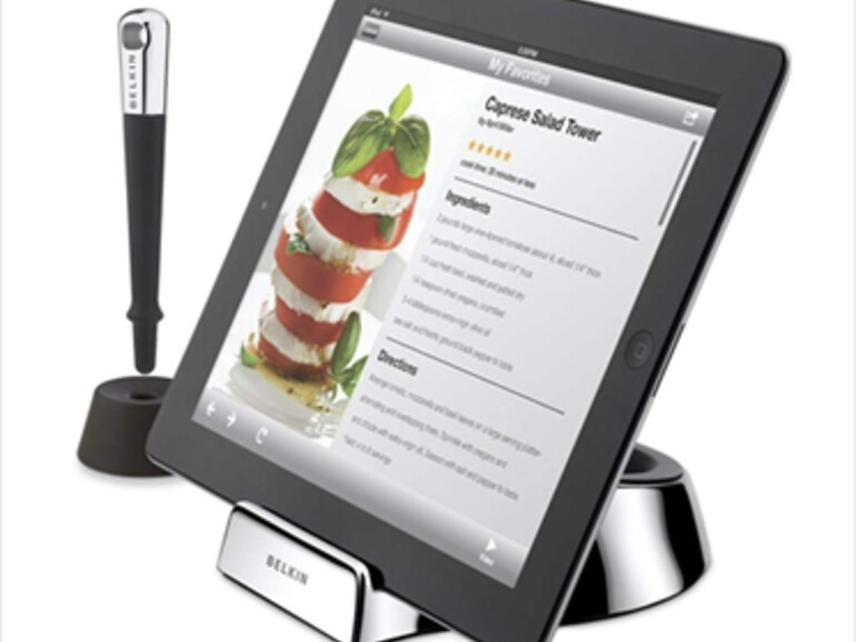 Der erste Tipp richtet sich an alle Hobbyköche. Für ein digitales Kochbuch sind Retina-Display und schnelle GPU nicht wichtig. Mit den geeigneten Apps wird das iPad zur Datenbank für Kochrezepte und verspricht mit Internet-Radio-Apps wie TuneIn Radio Rettung vor den „Hits der 90er, 2000er und dem Besten von heute“ aus dem örtlichen Dudelfunk. (Bild: Belkin Chef Stand)
