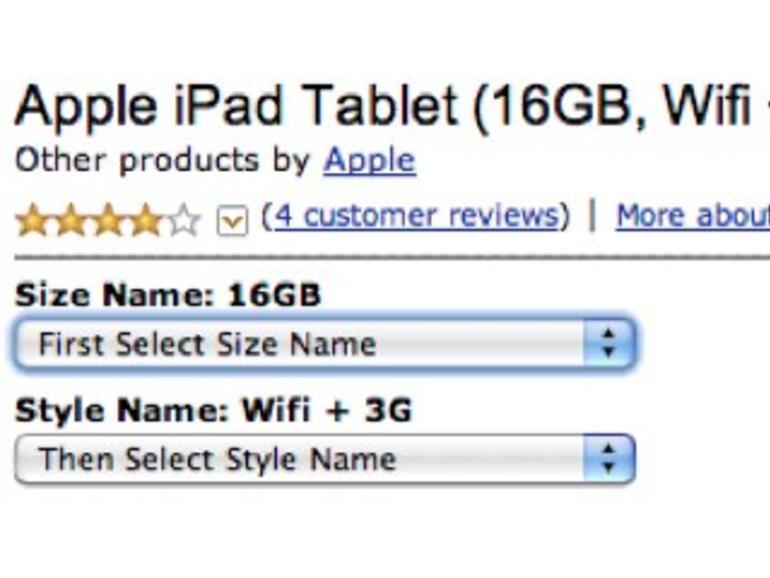 Bei Amazon ist das iPad zwar noch nicht über die Suchfunktion im Angebot zu finden, es ist allerdings ein Platzhalter aufgetaucht, über den Kunden sich das iPad vormerken lassen können. Details sind noch keine zu sehen, dafür aber bereits vier Kundenbewertungen.