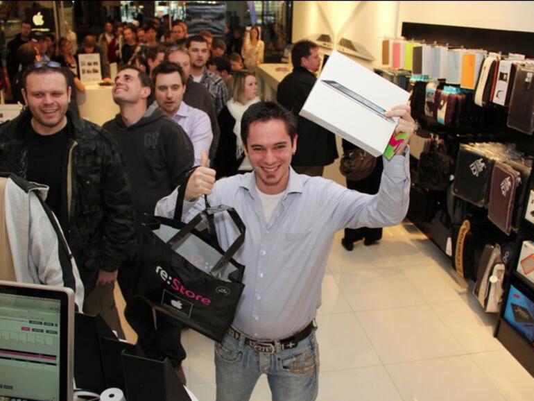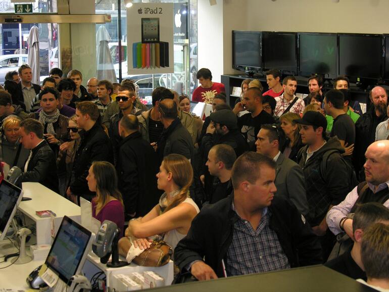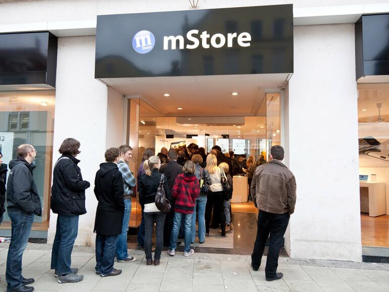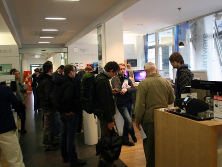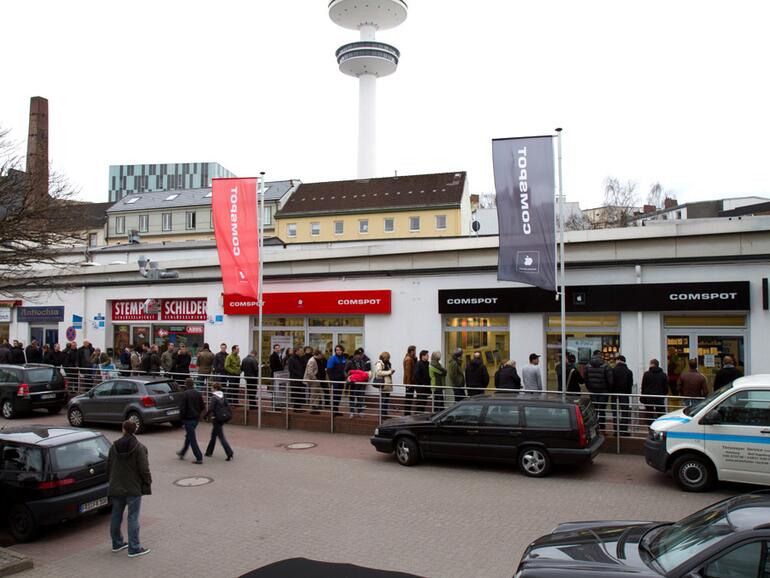 Wir sind äußerst zufrieden mit dem Verkaufsstart und waren bereits nach 2 Stunden in 7 der 10 re:Stores ausverkauft. Vor jedem Store hat sich ab 15 Uhr eine Menschentraube gebildet – geschätzt zwischen 150 und 300 Personen. Aufgrund der enormen Nachfrage konnten wir leider nicht alle Kunden bedienen, obwohl die Stückzahlen der Erstlieferung bei weitem höher ausgefallen ist, als noch beim Verkaufsstart des iPad.