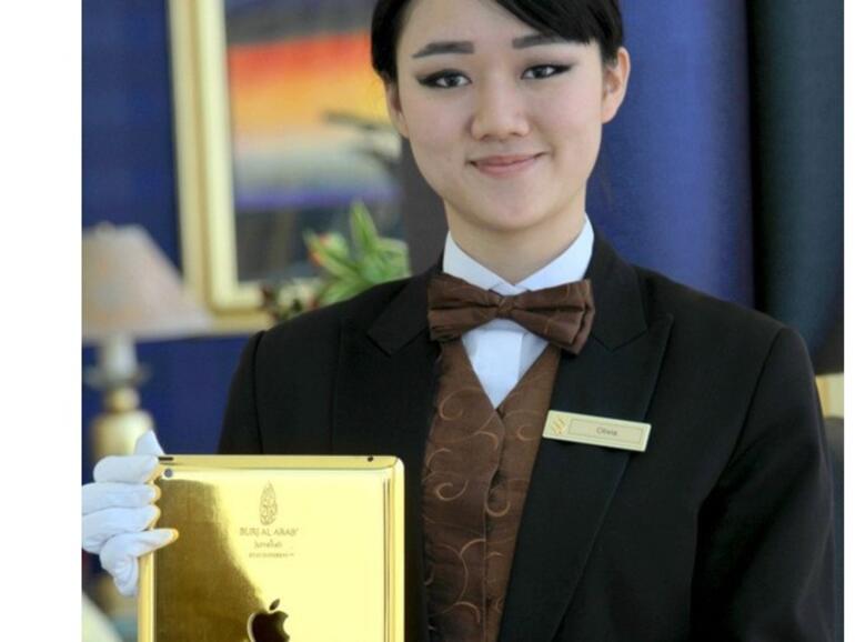 Was für ein edles Netzfundstück: Das Burj Al Arab in Dubai verleiht goldene iPads an die Gäste. Die iPads erweitern das Serviceangebot auf den Zimmern und Suiten mit einem virtuellen Concierge, der den Aufenthalt im Luxus-Hotel für die Gäste rund um die Uhr verbessern soll.