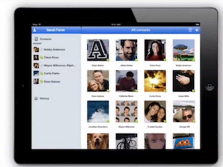 Skype nutzt natürlich die beiden Kameras vom iPad 2 und ermöglicht Text-, Audio- und Video-Chats über Wi-Fi und 3G. Die Kontaktliste erscheint in Form der Profilbilder. Einige Funktionen der Desktop-Version, beispielsweise das Senden von Dateien, werden nicht unterstützt.