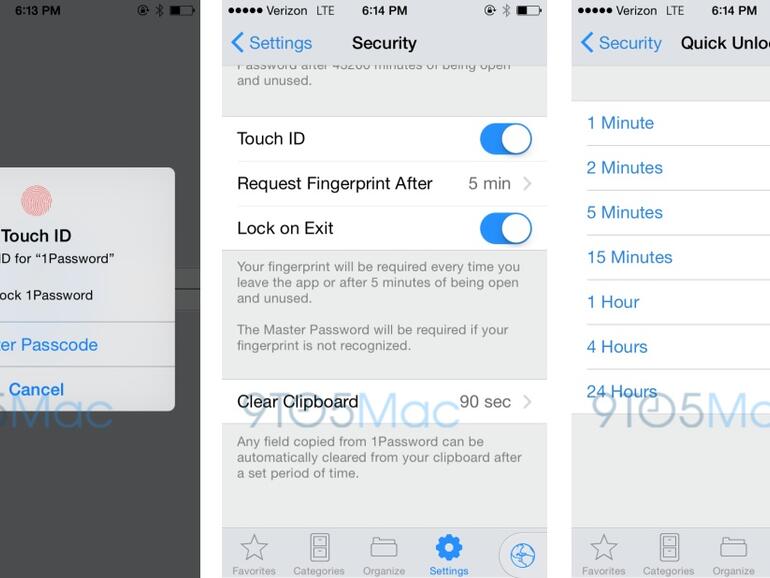 1Password macht es vor: Mit iOS 8 erhalten angepasste Drittanbieter-Apps ein Gros an neuen Funktionen. Die iOS-Passwort-Verwaltung lässt sich nun beispielsweise mit der Fingerabdruckerkennung koppeln. Per Eingabe in die Touch ID wird dann zum Beispiel die 1Password-App an sich freigehalten.
