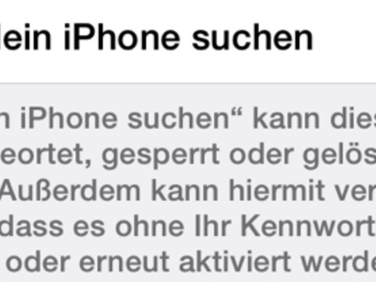 Als Schieberegler in den iOS-Einstellungen zu iCloud begegnet man unter iOS 7 der neuen Sicherungsfunktion, die den Diebstahl von iPhones, iPads und iPod Touch unattraktiver machen soll, da ein derart gesichertes Gerät ohne Eingabe der registrierten Apple-ID nicht mehr für neue Anwender zurückgesetzt oder die Ortung ausgeschaltet werden kann.