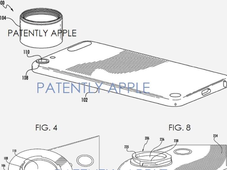 Laut Apple ist diese Befestigungsmethode besser als andere Lösungen wie zum Beispiel ein separater Vorsatz oder eine Magnethalterung. Das Patent erklärt im Detail, wie eine Linse auf ein iPhone oder ein anderes Gerät über eine Bajonettbefestigung und einen direkt im iPhone ausgesparten Hohlraum angebracht wird. Auch eine Schnellbefestigungsmethode beschreibt das Patent.