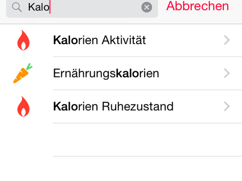 In der Health-App wurden die Kalorien in "Kalorien Aktivität", "Ernährungskalorien" und "Kalorien Ruhezustand" gedrittelt.