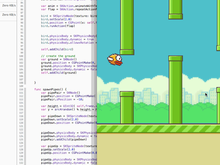 Nate Murray hätte seinen Flappy-Bird-Klon also teilweise mit Vögeln schreiben können, aber er hat dann doch "bird" geschrieben, statt zum Unicode-Vogel zu greifen. Seine Swift-Portierung von Flappy Bird basiert auf einem Projekt von Matthias Gall, der einen Klon des Spiels in Objective-C und SpriteKit geschrieben hatte. Den Quelltext von FlappySwift gibt es auf Github.