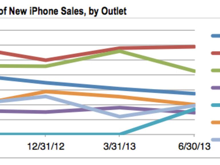 Aktuell schätzt man, dass etwa 20 Prozent aller in den USA verkauften iPhones in einem Apple Store gekauft werden, 80 Prozent bei Partnerunternehmen, die auch die Konkurrenzprodukte mit anbieten.