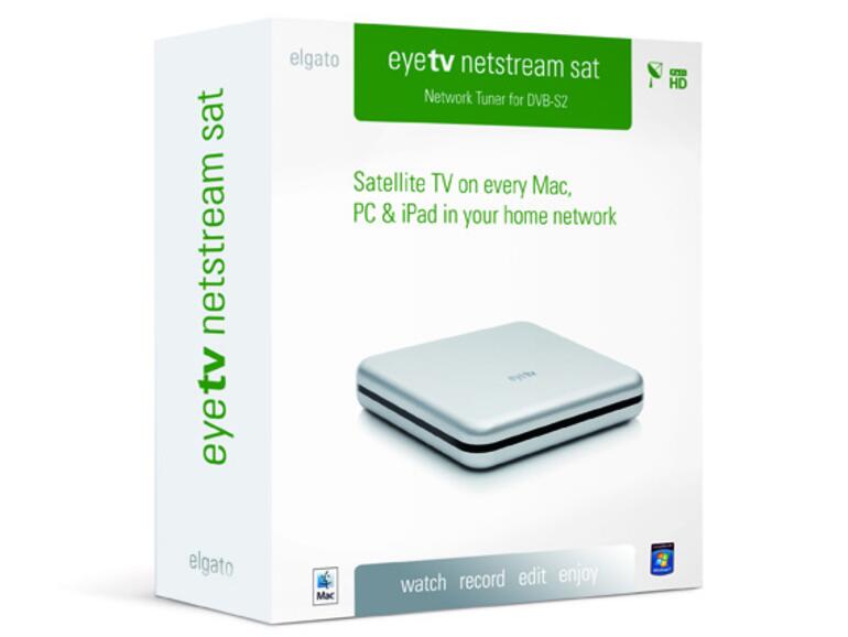 Dabei bedient sich das kleine Zauberkästchen des vorhandenen heimischen W-Lan und fungiert als Verbindungsstück zwischen Antennenanlage und Router. Das hat unter anderem zur Folge, dass iPad, iPod touch 4G und iPhone 4 nebenher zum Surfen verwendet werden können, ohne den Fernsehempfang zu unterbrechen. SD-Sender können dabei direkt vom EyeTV Netstream Sat ans Gerät gesendet werden, für den Empfang von DVB-S2 HDTV wird als zwischengeschalteter Server ein Mac oder PC benötigt. Die entsprechende Software ist im Lieferumfang enthalten.