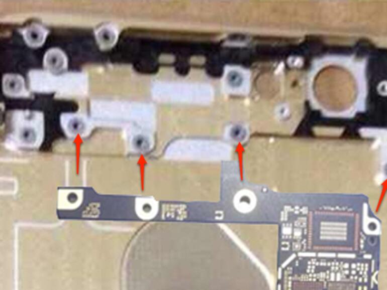 Das der obere Abschnitt sehr viel länger ist als im Vergleich zu dem PCB des iPhone 5s, deutet auf die neue Größe des iPhone 6 hin.