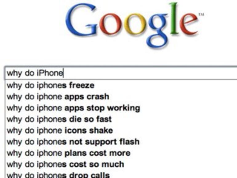 Startet man eine Google-Suche mit den Worten „why do iPhone …“, so wird als erste Antwort zur Vervollständigung des Satzes vorgeschlagen: „why do iPhones freeze“. Gefolgt von „why do iPhone apps crash“, und in diesem Sinne geht es weiter. Eine negative Satzergänzung folgt der nächsten.