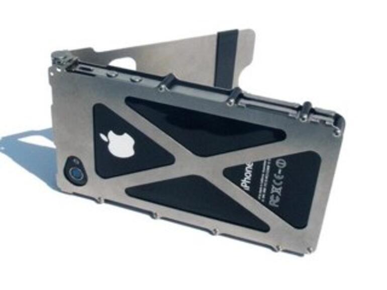 Das vom Designer Ryan Glasgow gefertigte Flip-Case für das iPhone ist komplett aus Edelstahl, besitzt Stoßfänger aus Gummi und hat natürlich die üblichen Aussparungen für Kamera, Ladegerät und Kopfhörer. Eine ideale, martialisch wirkende Hülle für den Einsatz im harten Alltag.