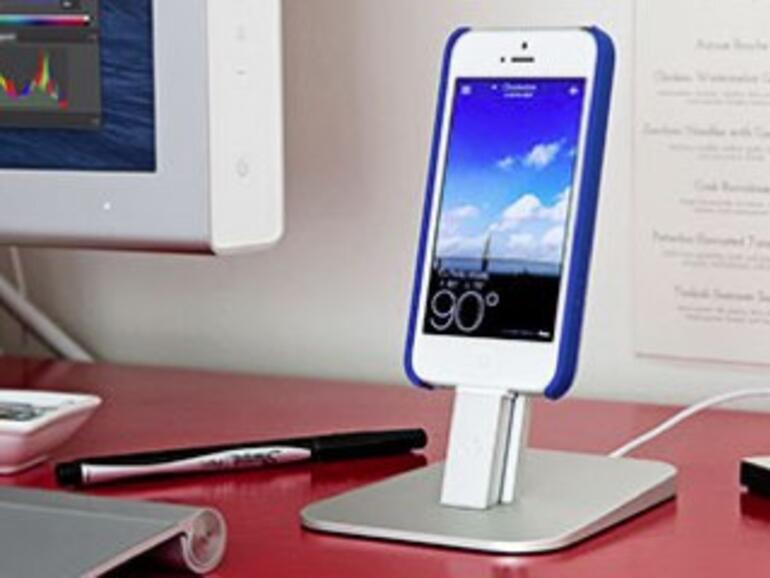 Der iPhone-Ständer HiRise von Twelve South ist aus Alumimium in der gebürsteten Metalloptik und passt daher gut zu anderem Zubehör und zum Apple-Design. Er nimmt sowohl das iPhone 5 als auch das iPad mini auf und lädt es gleichzeitig; nutzt dabei das Lightning-Kabel des iPhones.