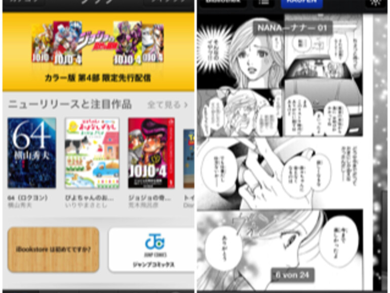 Das Angebot umfasst auch Manga, iBooks unterstützt das Umblättern in umgekehrter Richtung. Wer Japanisch lernt, kann im iBookstore im Vergleich zu Import-Büchern durchaus Geld sparen, aber ein japanischer iTunes-Account sollte vorhanden sein, denn die Bücher sind im deutschen iBookstore nicht erhältlich.