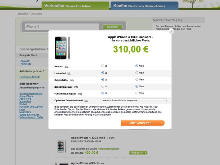 Am deutschen Markt sind unter anderem die Dienste reBuy und Flip4New als kommerzielle Ankäufer von iPhones tätig. Durch die standardisierte Online-Abfrage des Gerätezustands lässt sich dort direkt im Browser der Preis errechnen, den man für das iPhone 4 noch ausgezahlt bekommen könnte.